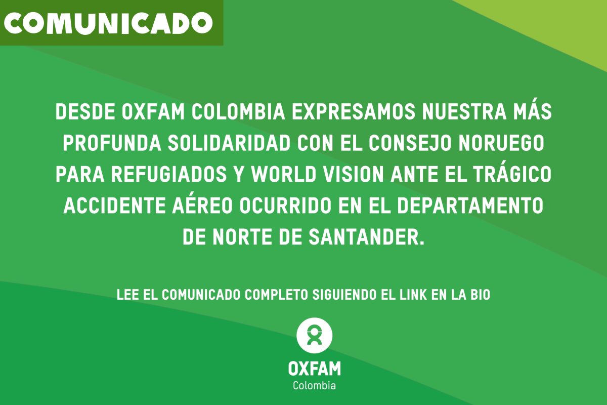 Desde Oxfam Colombia reiteramos nuestro mensaje de solidaridad y acompañamiento a NRC, World Vision y a todas las familias afectadas, reconociendo la invaluable labor de quienes, incluso en contextos complejos y de alto riesgo, trabajan cada día por la defensa de los derechos humanos y la justicia social.