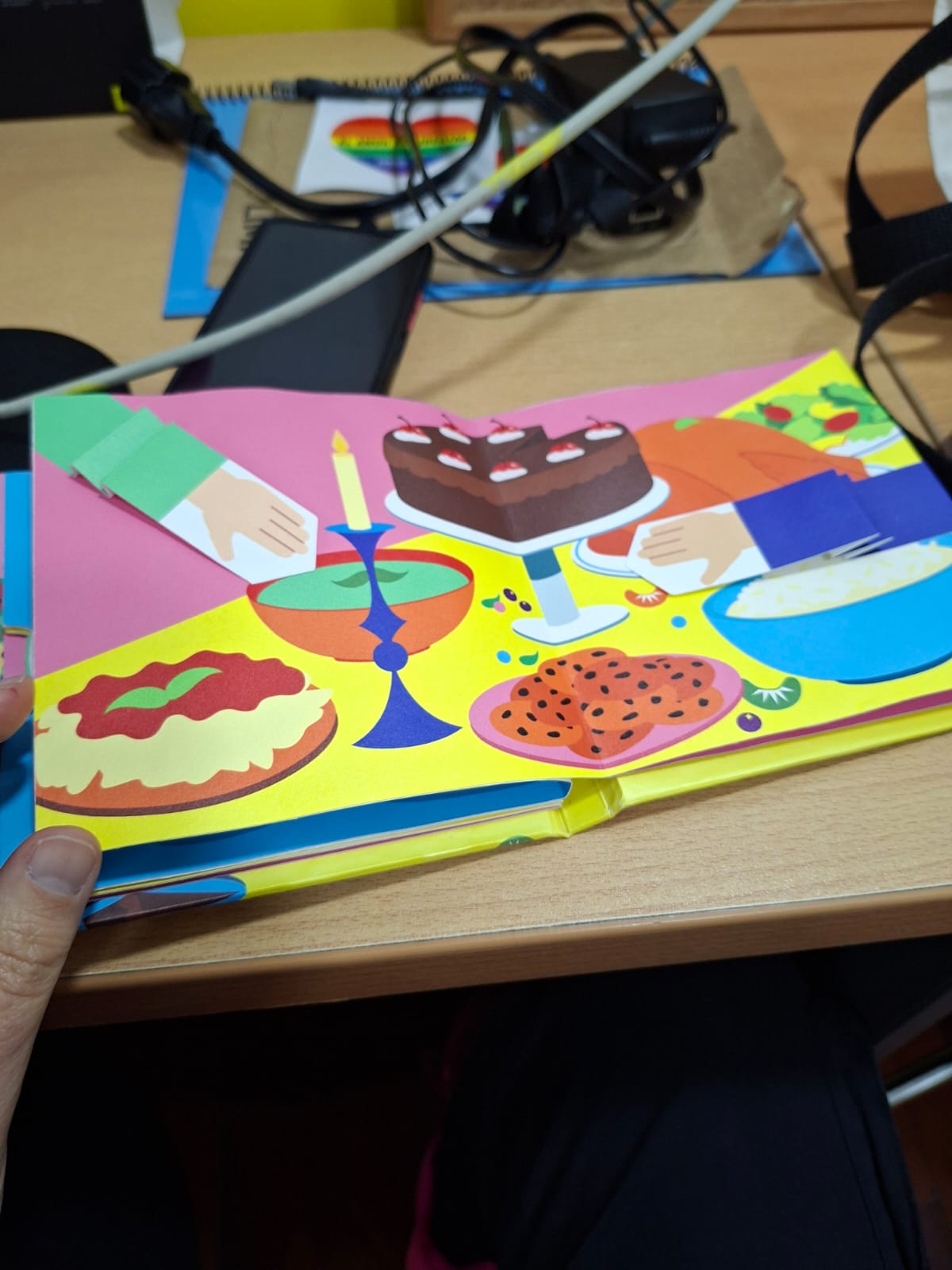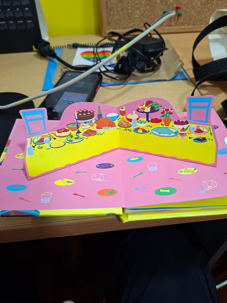 El Gran Banquete no cuenta una historia en el sentido tradicional. No hay un personaje principal, un conflicto central o un desenlace claro. En cambio, cada página es una escena que se despliega como un enigma visual, una imagen que sugiere, pero no dicta. Es el lector quien, al observar, manipular e interpretar, construye su propio relato y encuentra su propio significado